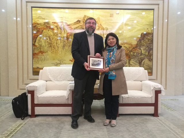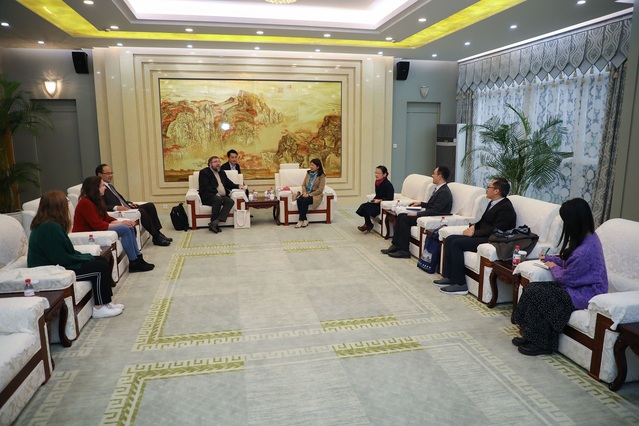 会谈时在座的还有对外合作交流处副处长王征,法语系副主任李沁、国际文化交流学院副院长鹿钦佞、法语系教师曹帅等。