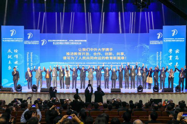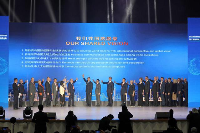 在“大学与人类命运共同体构建”主题仪式环节,22位中外校长走上舞台,探讨对“大学理念”的思考,共同倡议“携手推进教育开放、合作、创新、共享,谱写为了人类共同命运的教育新篇章”。