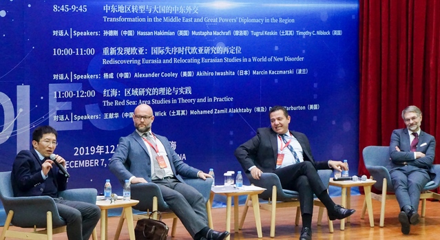 作为上海外国语大学70周年校庆系列活动之一,2019年12月7日,“区域研究国际学者对话”在上海外国语大学松江校区成功举行。此次学者对话共分三部分,主题分别为“中东地区转型与大国的中东外交”、“重新发现欧亚国际失序时代欧亚研究的再定位”、“红海:区域研究的理论与实践”。来自中国、美国、英国、波兰、日本、土耳其、埃及、卡塔尔等国知名学者以及外交官员与上外学者齐聚一堂,共同探讨中东、欧亚、红海等热点国别区域政治、经济、社会与文化等议题。