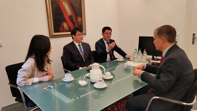 结束在北莱茵威斯特法伦州的行程后,法学院代表团前往德国巴登符腾堡州,对海德堡大学进行访问。海德堡大学法学院院长Ekkehart Reimer教授热情接待了法学院代表团一行。会谈中,Reimer院长表示,上海外国语大学与海德堡大学已经有35年的合作历史,他期待上外法学院与海德堡大学法学院能在此基础上开展进一步的合作。张海斌院长介绍了上外法学院在本科和多语种法律硕士教育方面的特色和优势。双方就法学院教师赴海德堡大学访学、德语经典法学著作译介等事项达成合作意向。会谈结束后,代表团一行还考察了海德堡大学法学院学生事务管理、部门法图书馆设置及研究机构建设等事宜,并与海德堡大学法学院的中国博士毕业生进行了面试交流。