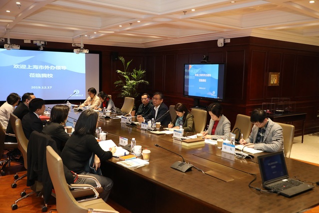 12月17日上午,上海市人民政府外事办公室主任张小松一行5人到访上外。校党委书记姜锋对张小松一行表示欢迎,双方就外事保障工作、外事干部培训、学生就业、学术研究等议题展开了深入交流。