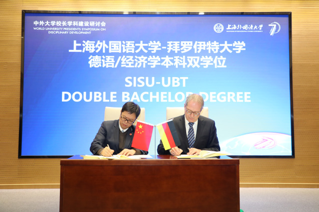 当今中国,中外合作办学如雨后春笋。许多高校在不断探索新的办学模式,以培养真正符合国家和地方战略需求的人才。上海外国语大学德语/经济学复合专业以其高质量的师资团队和长期的合作办学经验、紧密对接中德经贸交流,二十年来培育出一片“人才森林”,如今更是新文科建设和高端复合型人才培养中找到了创新点和突破口: 上海外国语大学70周年校庆之际,上外与德国拜罗伊特大学于12月7日正式签署德语/经济学双本科项目合作协议。