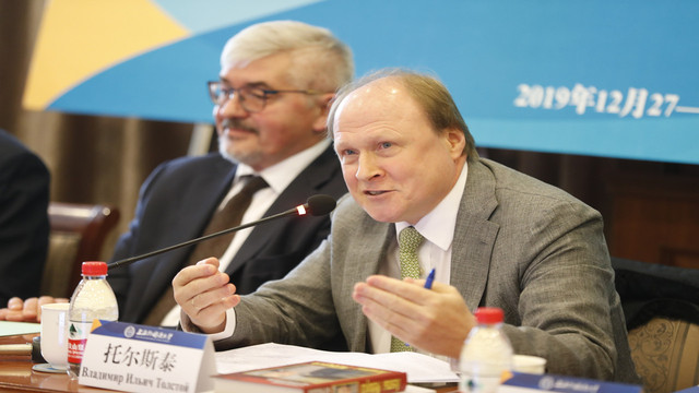 2019年12月27日-29日,第三届中俄青年作家论坛在上海外国语大学虹口校区召开。论坛由上海外国语大学、上海市作家协会、俄罗斯作家协会共同主办。上海外国语大学文学研究院院长、论坛发起人郑体武教授主持了开幕式。俄罗斯总统文化顾问弗拉基米尔·托尔斯泰,中国作家协会党组成员、副主席、书记处书记李敬泽,俄罗斯联邦驻上海总领事亚历山大·史玛聂福斯基,俄罗斯作家协会共同主席、《小说报》主编尤里·科兹洛夫,上海市作家协会党组书记、专职副主席王伟出席开幕式并致辞。来自中俄两国的三十余位青年作家代表参加了为期三天的创作交流活动。