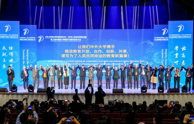 新华社客户端上海12月8日电(刘颖、钱俊妮)12月8日,“大学与人类命运共同体构建:中外大学校长学科建设”研讨会暨上海外国语大学建校70周年纪念大会在上海外国语大学举行。来自国内外的百余位知名大学校长与上海外国语大学的校友代表、师生代表等济济一堂,共庆上海外国语大学建校70周年。