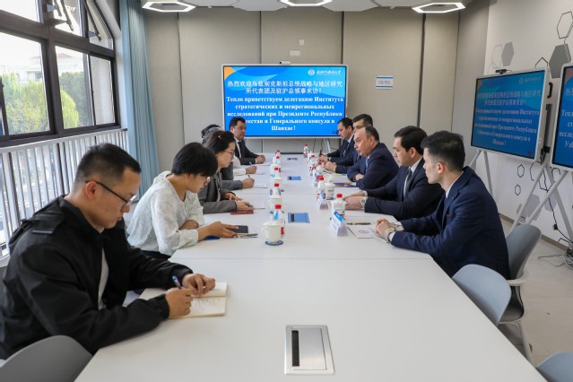李岩松对乌兹别克斯坦总统战略与地区研究所所长阿里波夫·埃尔多尔·塔希罗维奇(Eldor Aripov)、乌兹别克斯坦驻沪总领事谢尔佐德·纳尔祖拉耶夫(Sherzod Narzullaev)一行来访表示欢迎。李岩松介绍了上外基于多语种优势开展区域国别学学科建设、人才培养及国际合作的举措和成效,并重点分享我校在俄罗斯—欧亚研究,尤其是中亚地区研究及乌兹别克斯坦国别研究方面的最新进展,表示十分期待与乌兹别克斯坦总统战略与地区研究所在原有合作基础上进一步加强学术交流、智库对话、联合科研等合作,进一步拓展合作议题,不断巩固中乌教育人文交流合作。