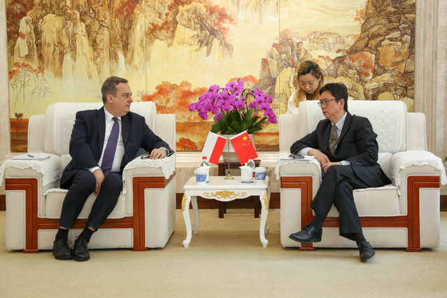 李岩松向亚当·布拉尔赤克介绍了上外的办学理念。他指出,作为一所以外语为特色的高等学府,上海外国语大学始终致力于培养具有跨学科知识背景和全球视野的复合型人才。在波兰驻华使领馆的大力支持下,波兰语专业自2017年设立以来,第一届毕业生已在中国、波兰及中欧其他国家的多个领域就业或继续深造,第二届学生也即将毕业。他表示,上外将继续致力于培养具有国际理解力、能够在国际舞台上讲好中国故事、促进中外人文沟通的优秀学子,承担起推动中波以及中欧人文交流的重要使命。