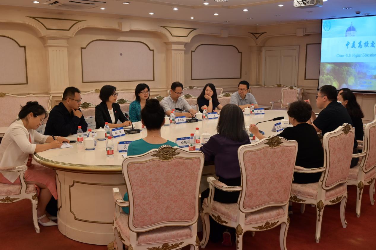 活动的第二环节“中美高校交流活动”由对外合作交流处处长毛小红主持。美国卡内基梅隆大学、纽约州立大学石溪分校、夏威夷大学马诺阿主校、阿拉巴马大学伯明翰分校等高校的学者,与学校英语学院、国际教育学院、国际关系与公共事务学院、语言科学学院的代表围绕语言学、教育学、政治学、国际关系及语言数据科学等领域的合作展开深入研讨,为下一阶段的合作项目达成一系列共识。