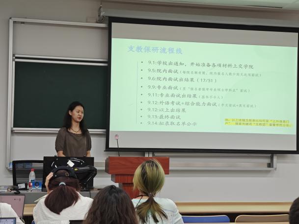2025年6月4日,中文学院/国际文化交流学院于松江校区第一教学楼154教室成功举办“青衿知行”第一期本科升学经验分享交流会。来自2021级汉语国际教育专业的四位本科毕业生陈康娜、马文雁、周张奕和闫润民分别聚焦 「名校申请、考研、保研、支教保研