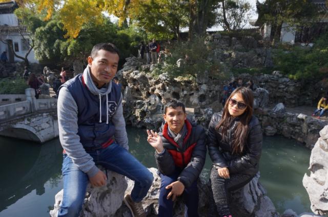 然后,孔子学院奖学金生参观了苏州四大名园之一的狮子林。因园内“林有竹万,竹下多怪石,状如狻猊(狮子)者”,故名“狮子林”。孔院奖学金学生在狮子林的迷宫中流连忘返,纷纷与园中的奇山怪石合影留念,感受中国园林艺术的博大精深。