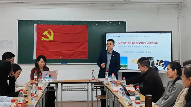 在主题发言环节,两院教师围绕国际中文教育、文学与语言学、翻译学、传播学、书法学等议题展开交流。发言由日本文化经济学院教工党支部书记林彬和中文学院/国际文化交流学院教工第一党支部组织委员缪俊主持。