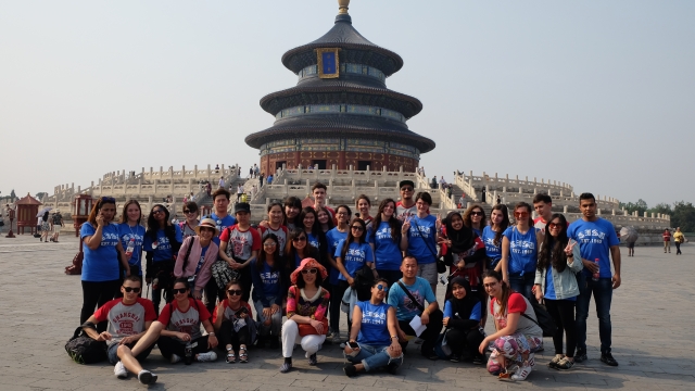 30日上午,奖学金生及老师一行人乘坐高铁从上海出发前往北京,下午游览了天坛,大家的热情如同当天的天气一般火热。当奖学金生们了解到天坛是世界上现存规模最大、形制最完备的古代祭天建筑群以及中国天圆地方这一传统思想时,都不由得赞叹起来。