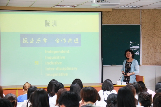 见面会上,院长张艳莉首先代表全院教职员工欢迎新同学的到来并致以节日的问候。在讲话中,张院长从学院的机构设置、学院领导、学院师资、留学生招生、研究生培养、国际合作等几个方面介绍了学院的基本情况及我院学位教育的培养历史,并展示了我院研究生的培养特色。接着张老师又向大家介绍了学院的校训院训。最后对我们的新生提出了几点希望,张老师说青春岁月,弥足珍贵,希望同学们一定要珍惜这段黄金时光,多多阅读经典、学会批判、勇于创新、合理规划,享受上外丰富多彩、终生难忘的研究生生活。