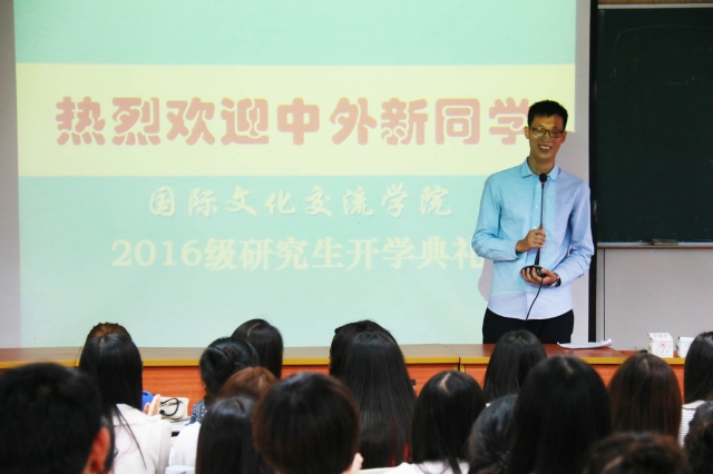 9月14日,上海外国语大学国际文化交流学院2016级研究生新生见面会。见面会由学院副院长朱建军主持,学院院长张艳莉、党委书记陈全生、副院长鹿钦佞、以及汉语国际教育专业博士生导师、导师组长和一百余名2016级研究生新生参加了本次见面会。