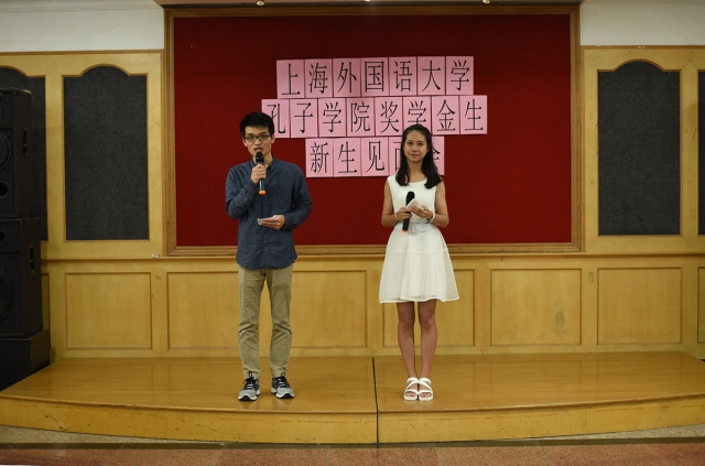 会上,国际文化交流学院副院长鹿钦佞向奖学金生们致欢迎词,鹿老师说,成为奖学金生,既是一件光荣的事,又是一件责任满满的事,希望他们在上外愉快生活的同时,不忘学习、不忘参加各种交流活动。接着朱璇老师向奖学金生介绍了一个学期的文化体验课程,重点强调了纪律问题。最后黄一苇老师用中英双语给学生详细讲了奖学金生的考勤规定。