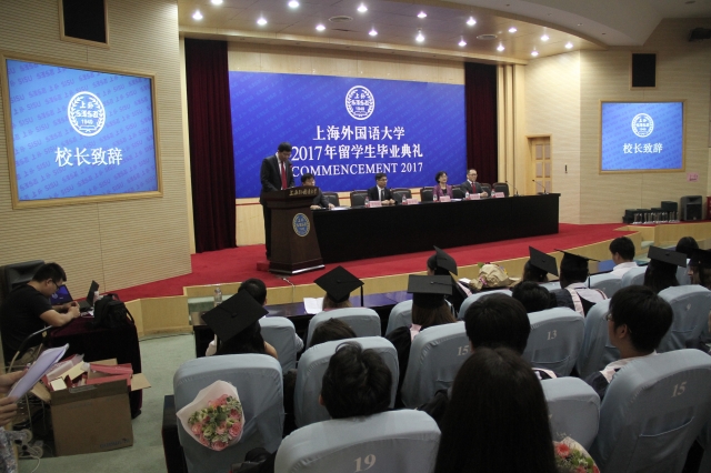 2017年6月9日上午,上海外国语大学国际文化交流学院本科留学生毕业典礼在第一报告厅隆重举行。上海外国语大学副校长杨力教授、国际文化交流学院张艳莉院长、陈全生书记、葛起超副院长、鹿钦佞副院长及毕业班教师出席了本次毕业典礼。不少毕业生家长也不远万里,从世界各地赶来,与毕业生们一起分享孩子学有所成的喜悦。