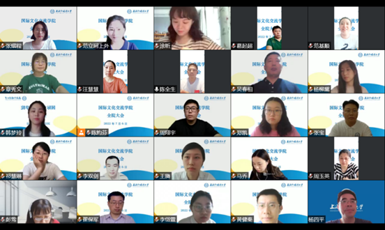 7月6日,国际文化交流学院期末全院大会在线上召开。全体教职员工参加会议。会议由学院党委书记陈全生主持。
