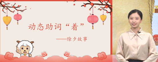 (该作品灵感来源于儿时动画角色,在语言点教学中融入文化因素,在情境教学中将“着”字与春节文化习俗结合起来。)
