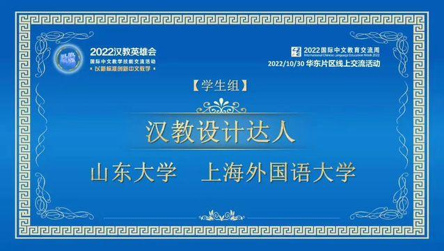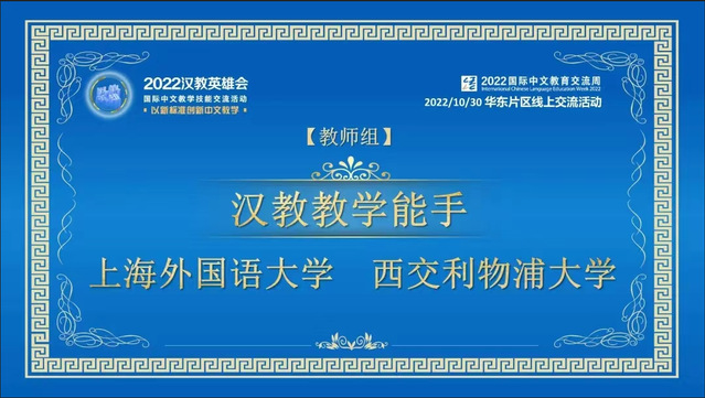 我校师生团队参加2022年“汉教英雄会”华东片区交流活动分别荣获“汉教教学能手”“汉教设计达人”称号。