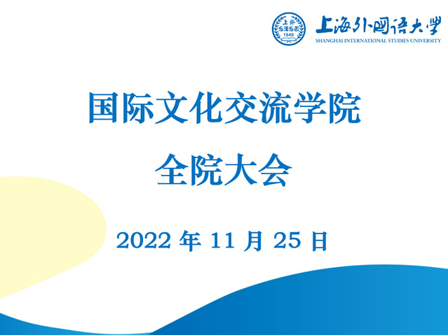为深入学习贯彻落实党的二十大精神、做好近期各项工作的统筹安排,11月25日下午,国际文化交流学院组织召开全院大会。会议由学院党委书记陈全生主持,以线下线上的方式同步进行,全体教职员工参加。