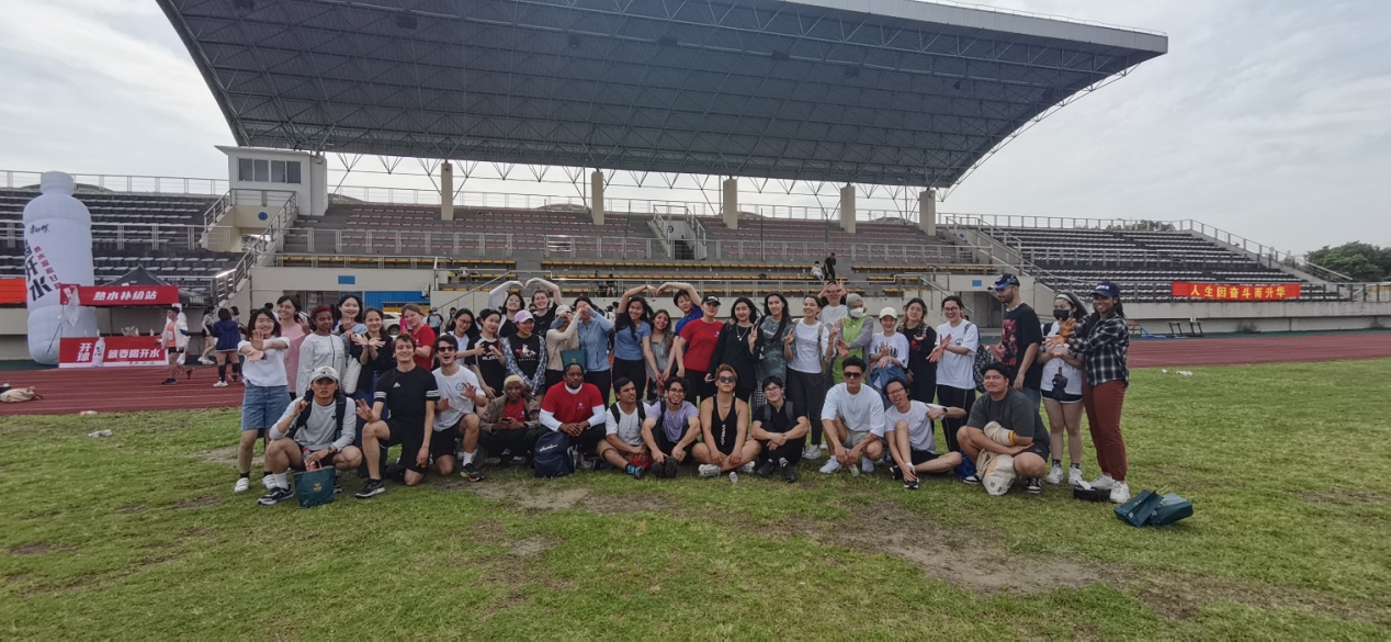 (上外第六十三届运动会暨校园马拉松健康欢乐跑活动留学生合影)