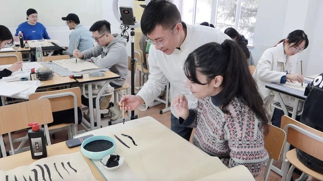 青年教师团队不断研修提升书艺,积极搭建适合国际学生的新模式,摸索新方法,将第二语言“技能习得”理论与书法教学相融,通过动作与线条的训练,线上与线下的互动,打通书体知识,讲好笔画故事,练好中国书法,孕育中式美学。课程深受中外学生的欢迎,取得了预期的教学效果。同时,学院还在松江校区为全校大学生开设“书法美学与鉴赏”通识课,目前已教授三轮,广受好评。