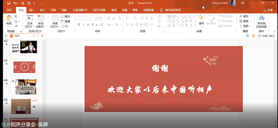接触说学逗唱,感悟诙谐趣味。12月11日,中国相声文化交流活动欢乐亮相。主讲人张婵从“前世今生”“相声基本功”“南派相声”三个方面展开分享,同时,辅之以《八扇屏莽撞人》《挡谅》《太平歌词》等相关视频进行展示。其中,在以粤语为主的南派相声讲解中,小组成员萧泳璇、罗宾带领留学生一起学粤语,多位留学生“举手”参与,日本留学生长坂泉表示:“我一直以来特别想学粤语,没想到这次竟然有机会学习!”。活动结束后,“很有意思”成为留学生的普遍评价。