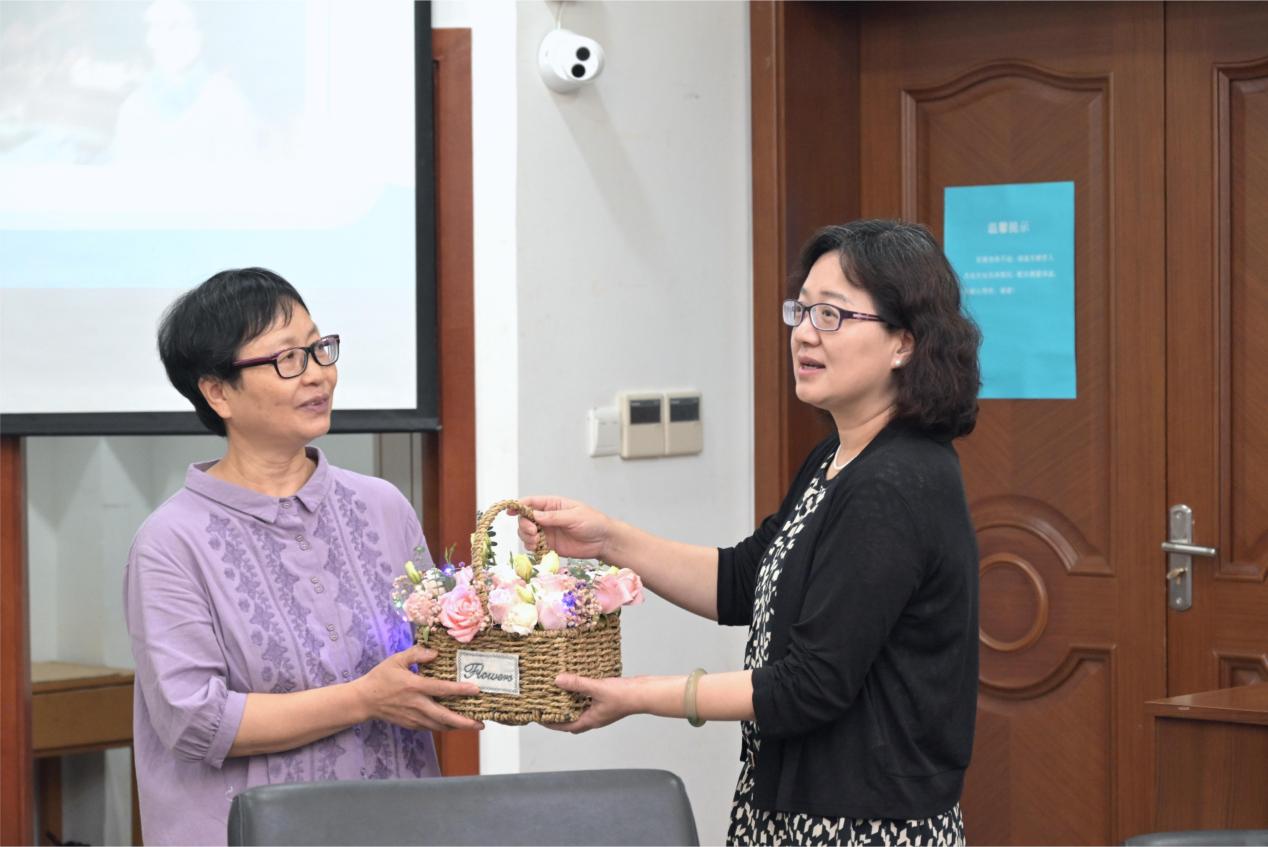 会议最后,学院为殷丽玉副教授举办了简短而温馨的荣休仪式。殷老师回顾在上外国交学院工作的二十余年历程,表示“对这份职业,多的是热爱与不舍;对领导和同仁,缔结的深厚情谊将永存”。仪式中,院长和书记共同向殷老师送上鲜花与诚挚的祝福,感谢她对中国语言文化传播的热忱和为国际中文教育事业做出的贡献。退休不褪色,离岗不离心,祝福殷老师在人生新阶段遇见更宽广的山海,谱写更绚丽的华章。
