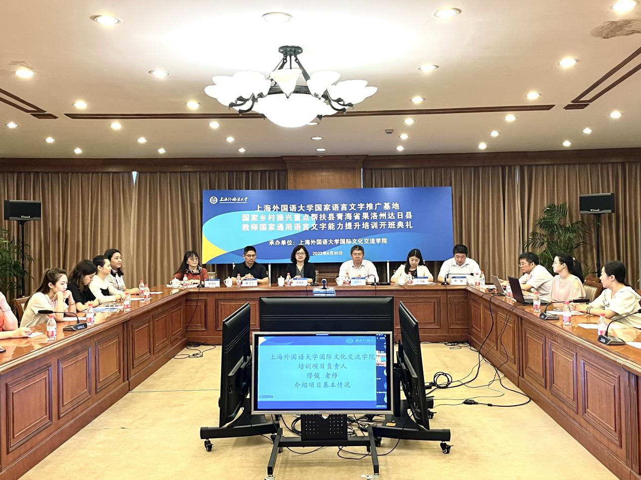 为深入贯彻习近平总书记关于语言文字工作的重要指示精神,推动实施国家通用语言文字普及提升工程和推普助力乡村振兴计划,发挥国家语言文字推广基地的示范带动作用,6月30日,上海外国语大学对口青海省果洛州达日县教师国家通用语言文字能力提升培训正式开班。