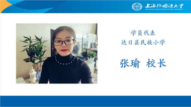 学员代表、达日县民族小学张瑜校长在发言中感谢上海外国语大学国家语言文字推广基地给达日县一线教师创造了继续学习探索的机会。她表示,国家通用语言文字的重要性不言而喻。学员们应以此培训为契机,进一步提升自身的文化素质和综合能力,以更加饱满的热情和姿态投身到教育事业中,为达日县的教育发展做出贡献。