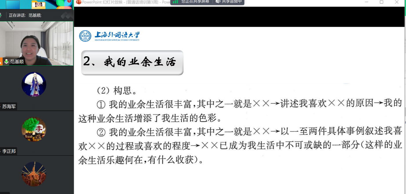 小班培训师还根据本班情况为学员制定了个性化学习方案,灵活开展一对一在线辅导和形式多样的操练活动,帮助学员进一步提高普通话水平和表达技巧。