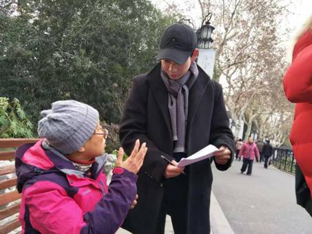 “阿姨,我们是上外的留学生,今天来这儿做采访,您有时间跟我们聊聊吗?”有老师的鼓励,同学的相伴,大家纷纷迈出了第一步。叔叔阿姨们也非常友好,热情:“当然可以,你有什么问题尽管问我。”有时候遇到学生们不懂的词,叔叔阿姨们还帮他们写下来,用简单的汉语解释词的意思和用法。
