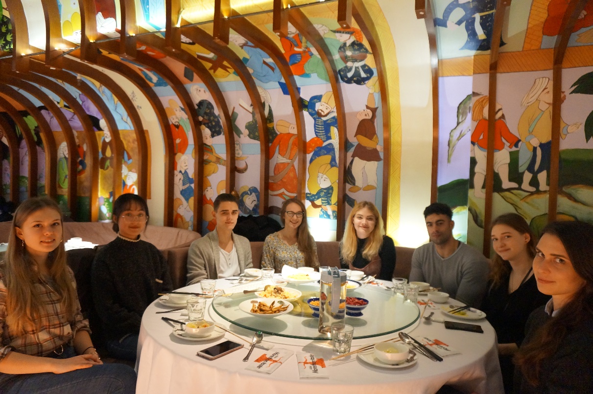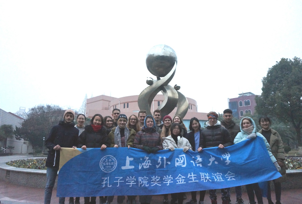 2019年1月8日下午5点,即将结束中国留学生活的孔子学院奖学金生,在一号楼前合影留念,并一起前往参加国际文化交流学院为他们组织的欢送会。欢送会在一家新疆餐厅举行。在轻松活泼的氛围中,留学生和中国学生们分享了很多他们在上外的留学生活。