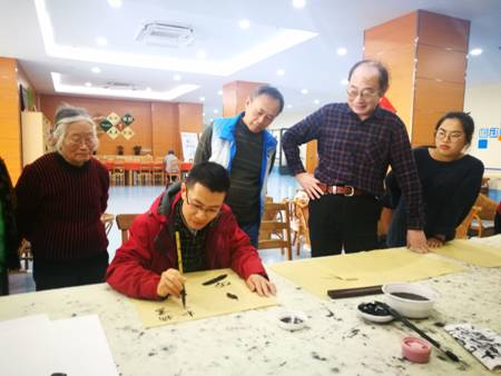 临近参观尾声,恰好到了驿站书法社的活动时间,我支部的黄建秦老师一展身手,书画俱佳的作品博得一片称赞,老社长喜不自禁,当场邀请黄老师常来驿站交流。这意外的惊喜为此次主题党日活动划上了圆满的句号。(何晖高思畅)