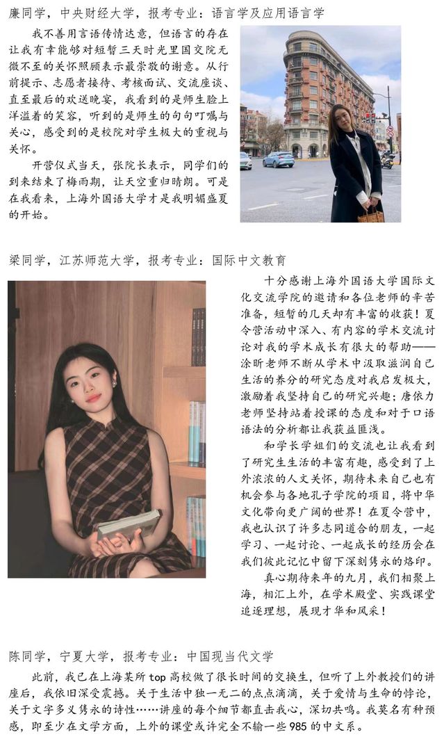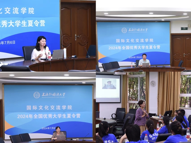 2024年7月4-6日,国际文化交流学院成功举办第七届全国优秀大学生夏令营,共有74名来自全国各大高校的优秀学子参加了此次活动。在上海持续高温的三天中,营员们热情不减,精神饱满地参加了夏令营的各项活动,包括学术讲座、新老生座谈及专业测评等。