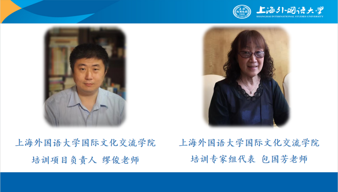 开班典礼采用线上直播的形式。出席开班典礼的有上海外国语大学校长办公室主任兼乡村振兴工作领导小组办公室主任蒋昕宇,上海外国语大学国家语言文字推广基地执行副主任周晓林,上海外国语大学国际文化交流学院院长张艳莉、党委书记陈全生,培训项目总策划缪俊,专家代表、国家级普通话水平测试员包国芳,新疆维吾尔自治区和田地区皮山县教育局培训发展中心主任刘烈峰,皮山县教育局语培项目负责人李雪,以及全体参训学员。典礼由上海外国语大学国际文化交流学院副院长朱建军主持。