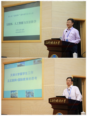 接着,大会再次进入主题报告环节。华东师范大学国际汉语文化学院院长张建民教授首先做了题为《基于互联网的汉语教学环境创设》的报告,从信息资源环境、教学授递系统环境、教学评价等多个方面系统介绍了创设互联网+汉语教学环境,从而达到交互性学习、课程整合、全空间连通等目标的理念和方法。之后,国际文化交流学院院长张艳莉老师结合国家政策层面对“互联网+”教育的要求和国交学院来华留学生教育发展的现状,介绍了国交学院推进融合式课程设计的理由和内涵,并就“互联网+”背景下来华留学生融合式教学的三种宏观课程设计进行了详细介绍,最后从远程学历教育开发、融合式出版物开发等多个角度指出了我们在融合式教学方面的发展前景。西北师范大学国际文化交流学院武和平教授的报告题目为《走进课堂、走向世界:面向汉硕培养的微课开发与实践》。他先简要介绍微课的历史,然后运用TPACK理论阐述了汉硕培养的理念,并以实例介绍了西北师范大学在微课开发与汉硕课堂、来华留学生教育的发展情况。在最后一场主题报告中,上海外语音像出版社社长胡加圣先生先从发展历史、选稿审稿等方面介绍了《外语电化教学》期刊,并从理论、实践、发展态势等多个方面介绍了“外语教育技术”,最后就汉语国际教育如何与外语国内教育实现大融合提出了建议。