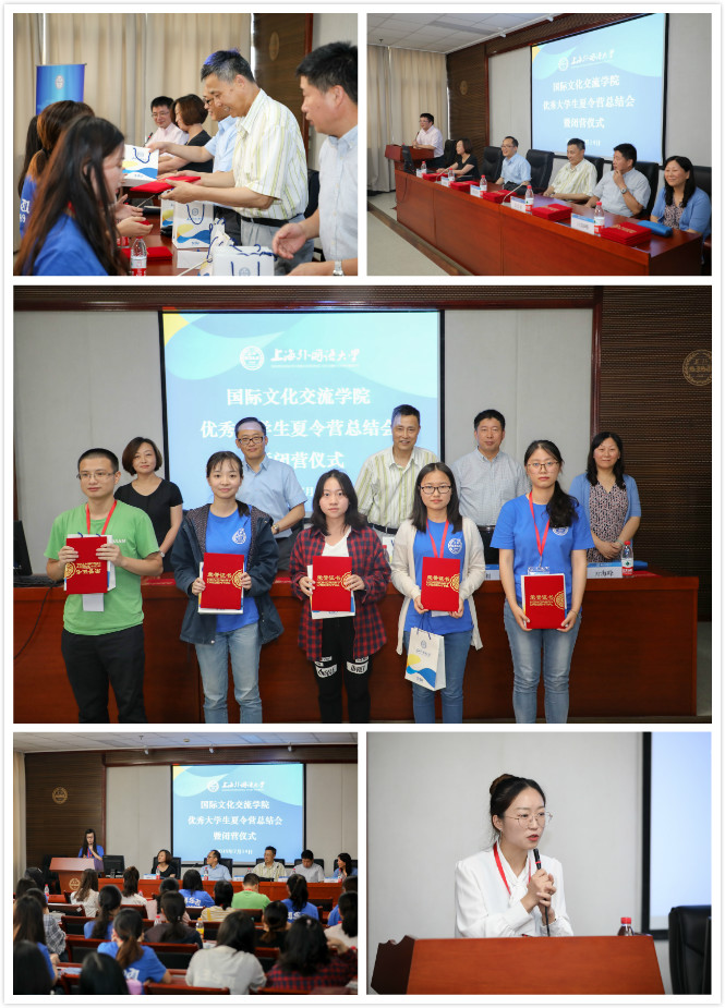 14日下午,全体营员和国交学院的老师一起,参加了本次夏令营的闭营仪式。在仪式上,朱建军老师首先宣布了本次夏令营被评为“优秀营员”的学生名单,各学科点负责老师为他们颁发了获奖证书和纪念品。随后,数名学生上台表达他们的感受和对夏令营的看法。最后,朱建军老师代表学院对所有营员、专家老师以及工作人员表示感谢。据悉,获评“优秀营员”的学生,如取得本科学校推荐免试生资格且符合上海外国语大学2020年接收推免生的条件,可被拟录取为2020年推荐免试硕士研究生。