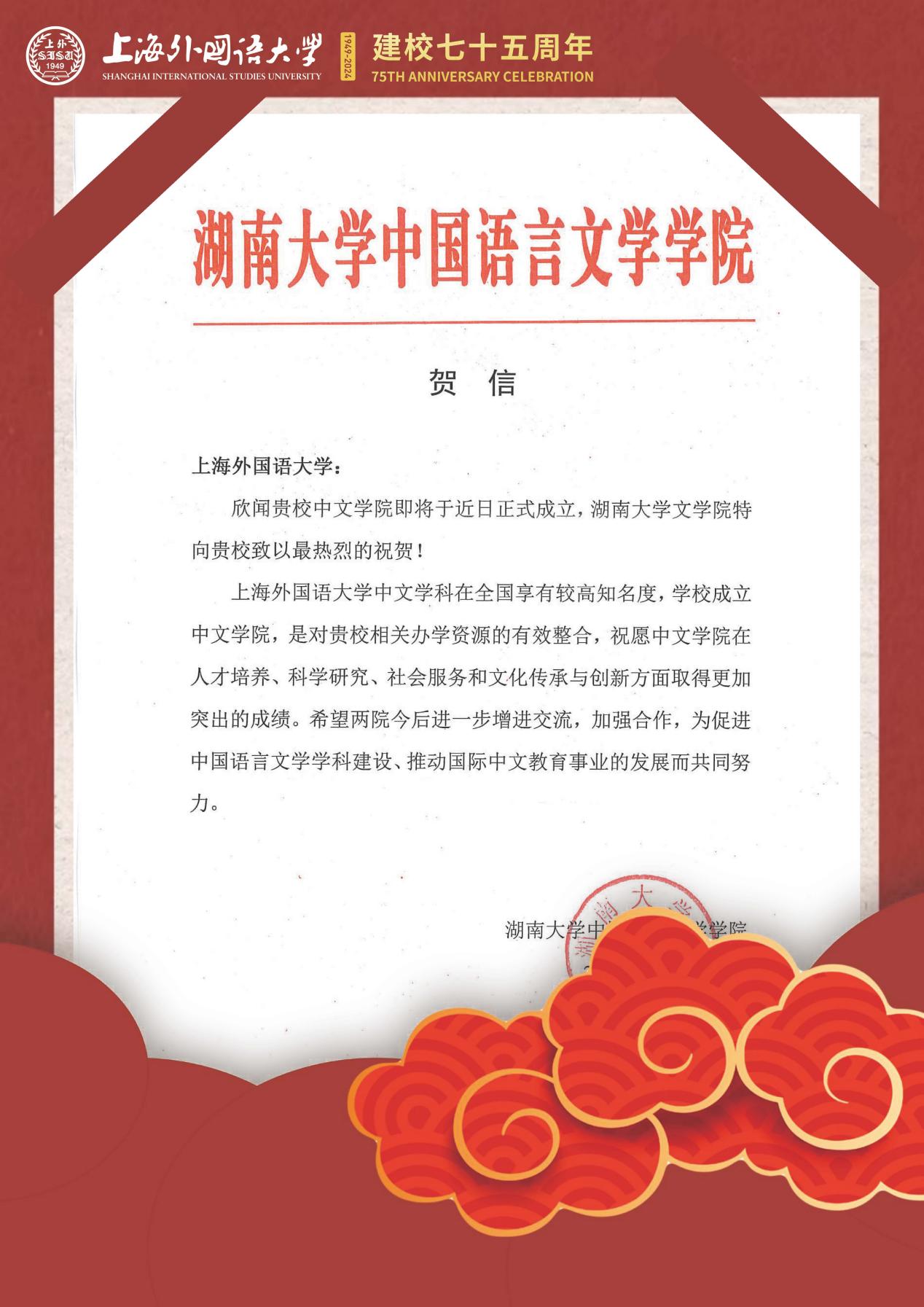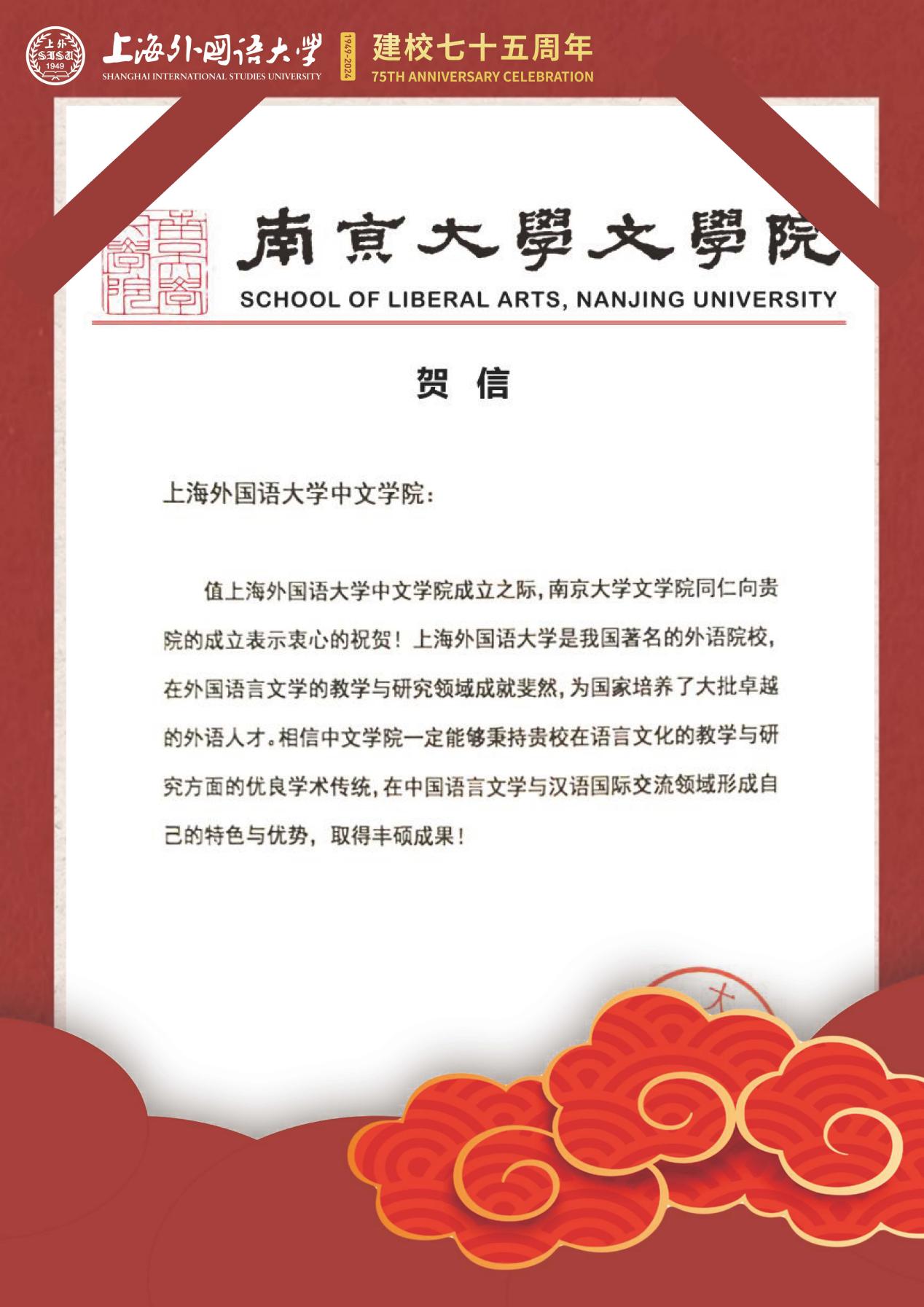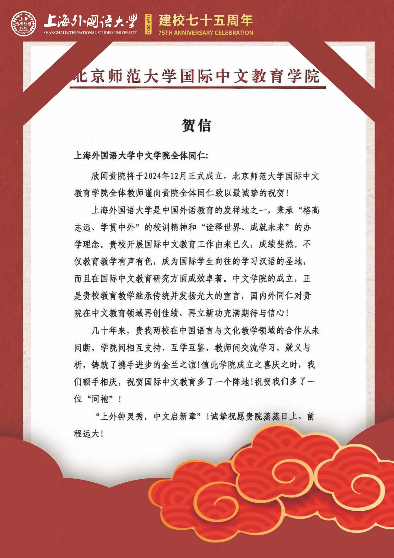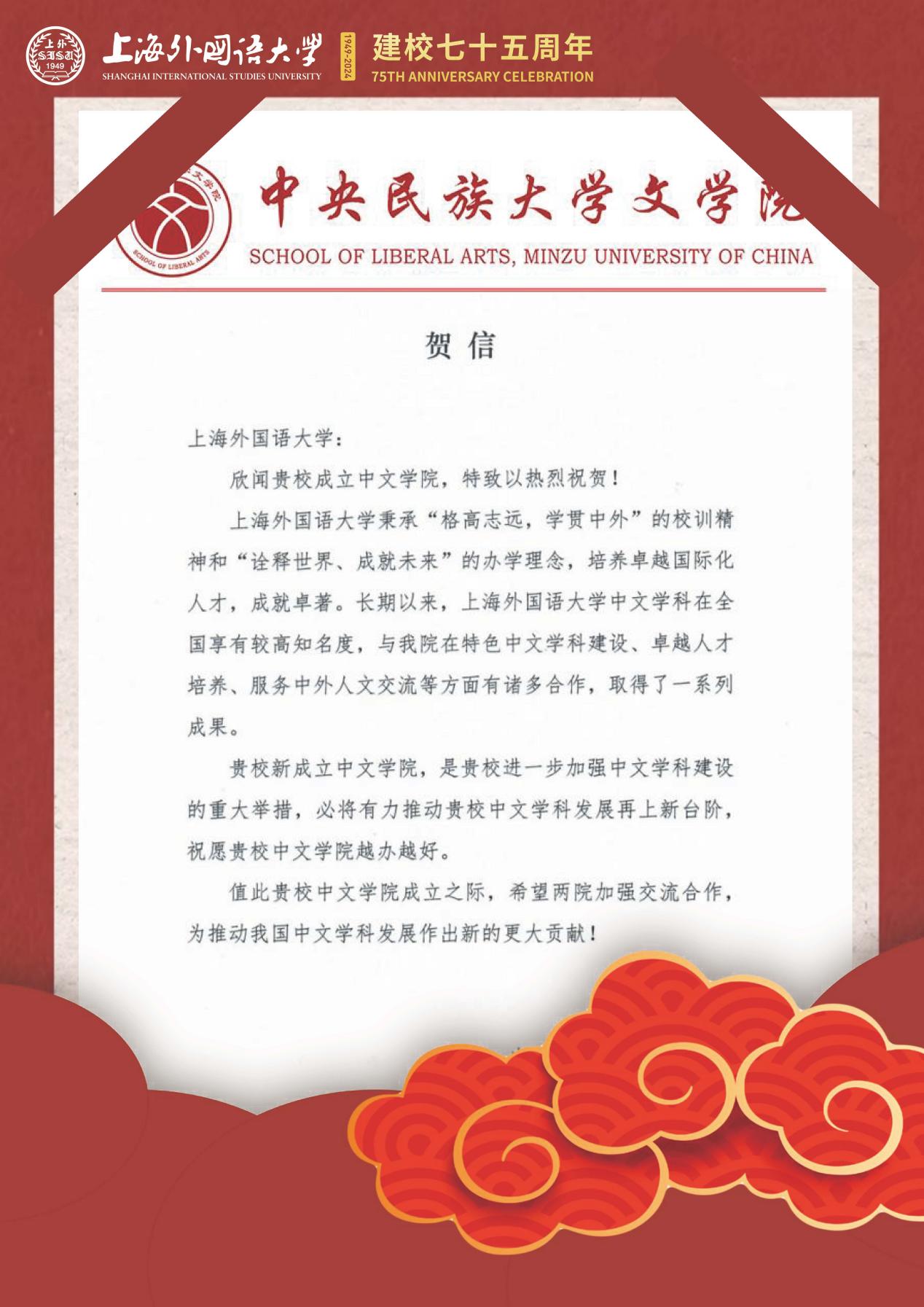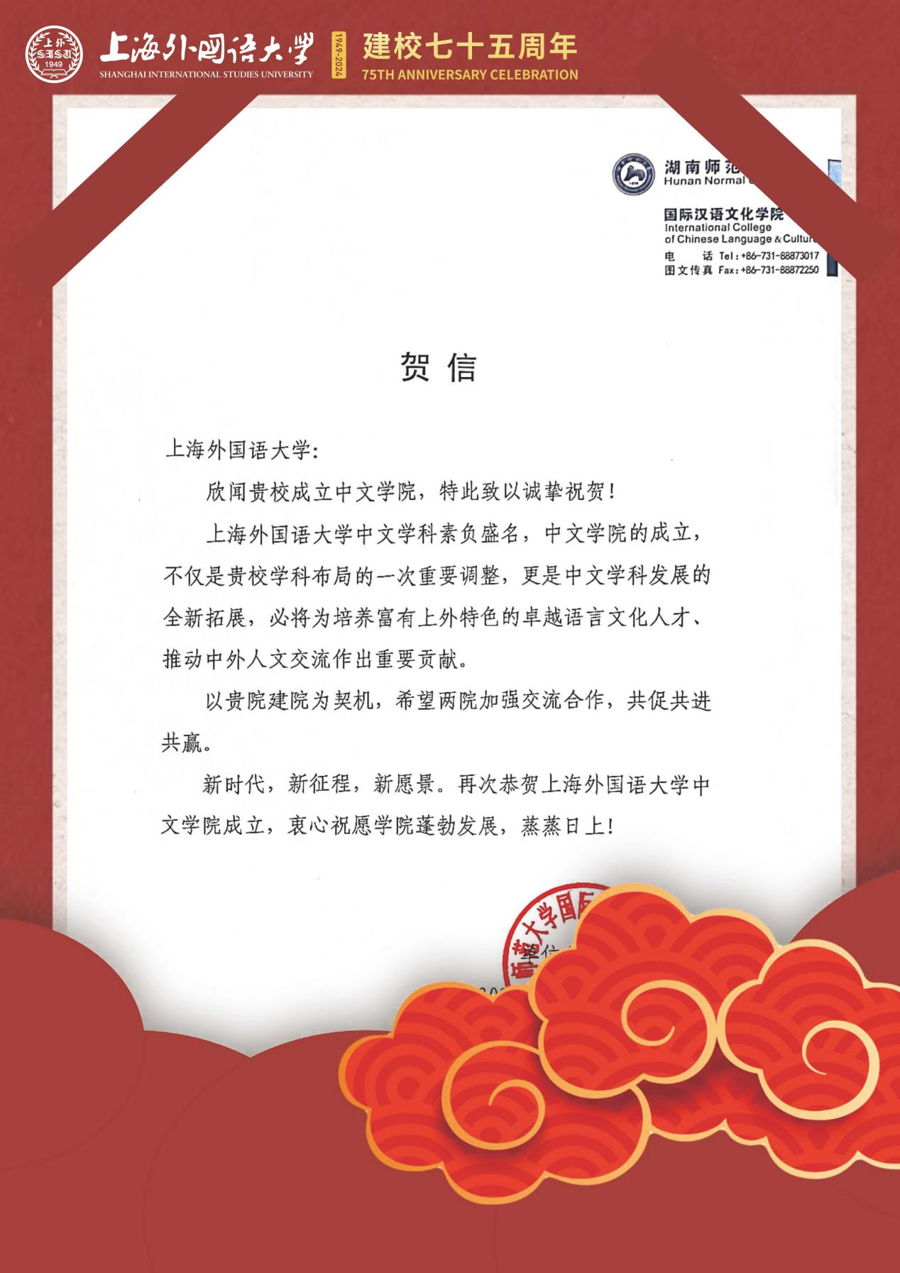 学院共收到32封来自全国各地兄弟院校的贺信