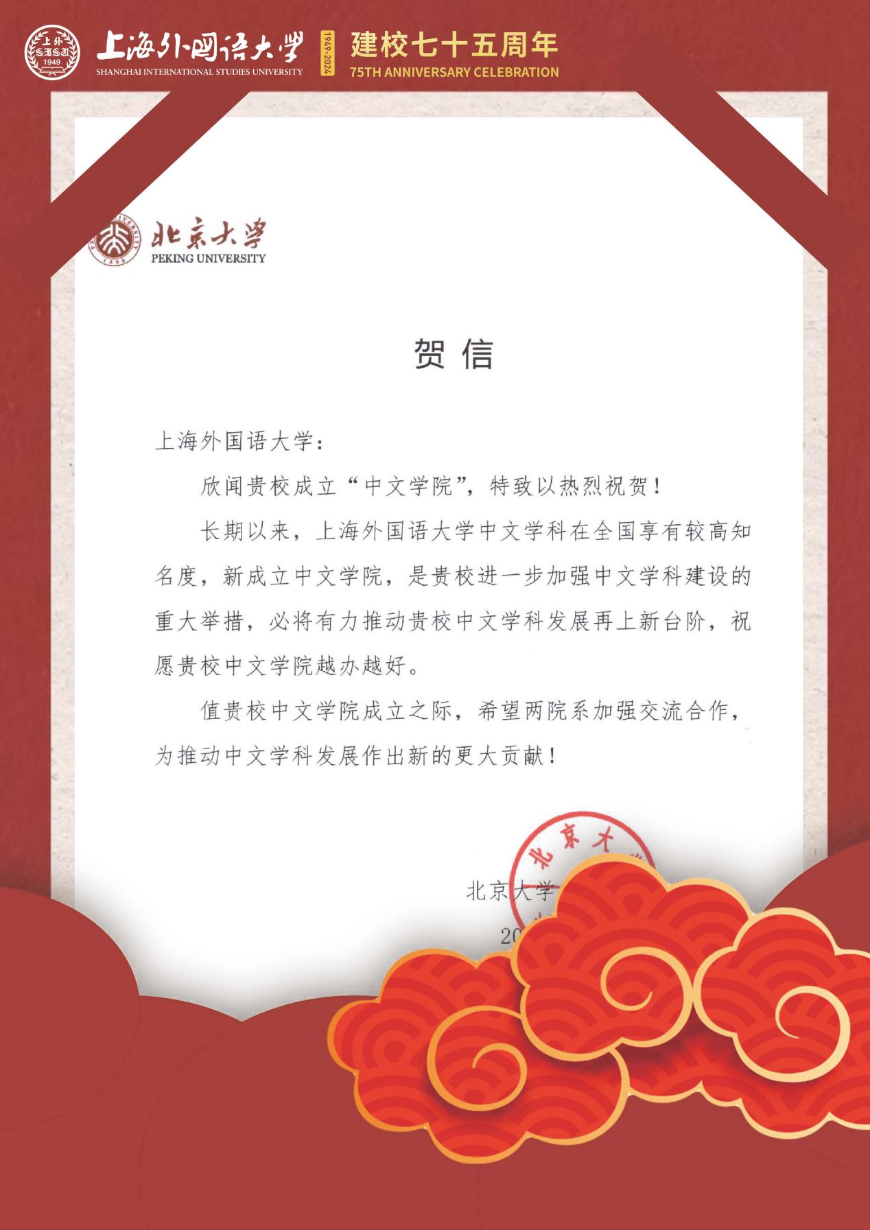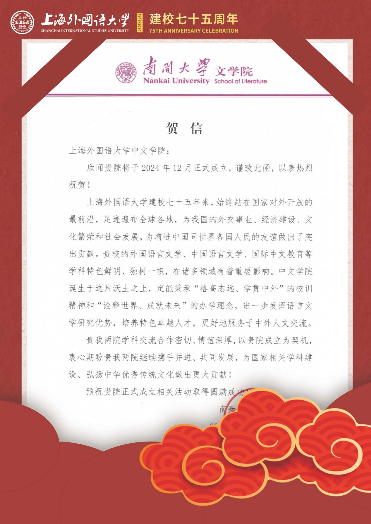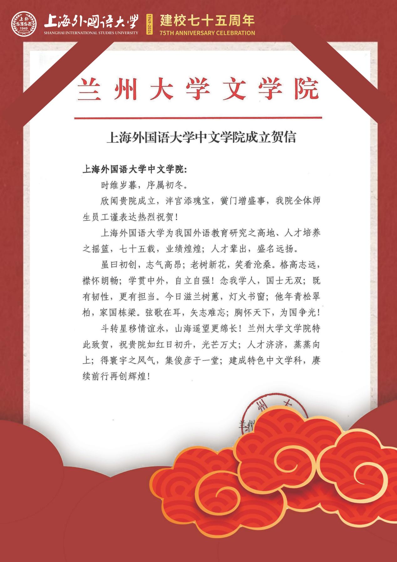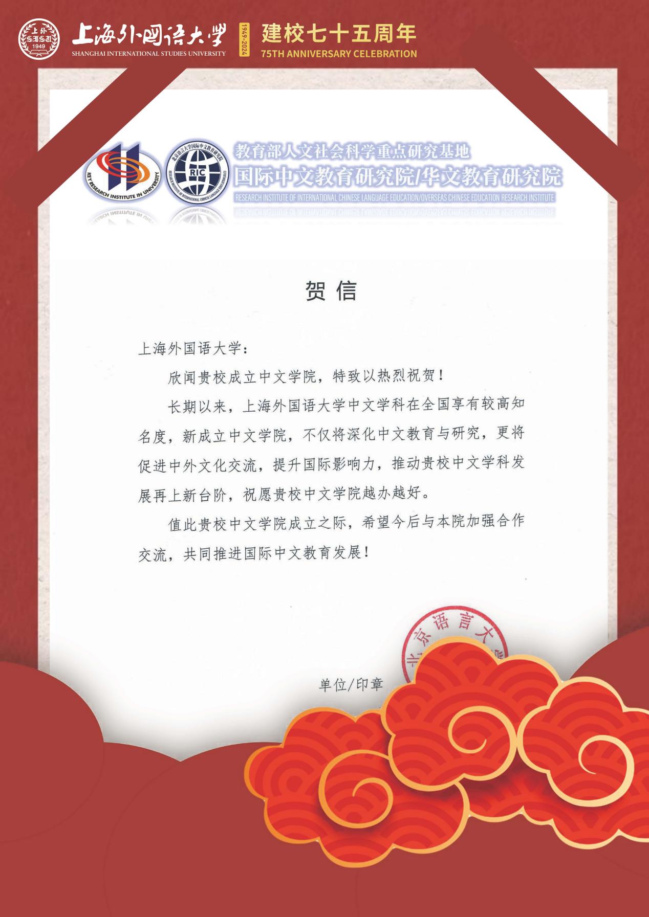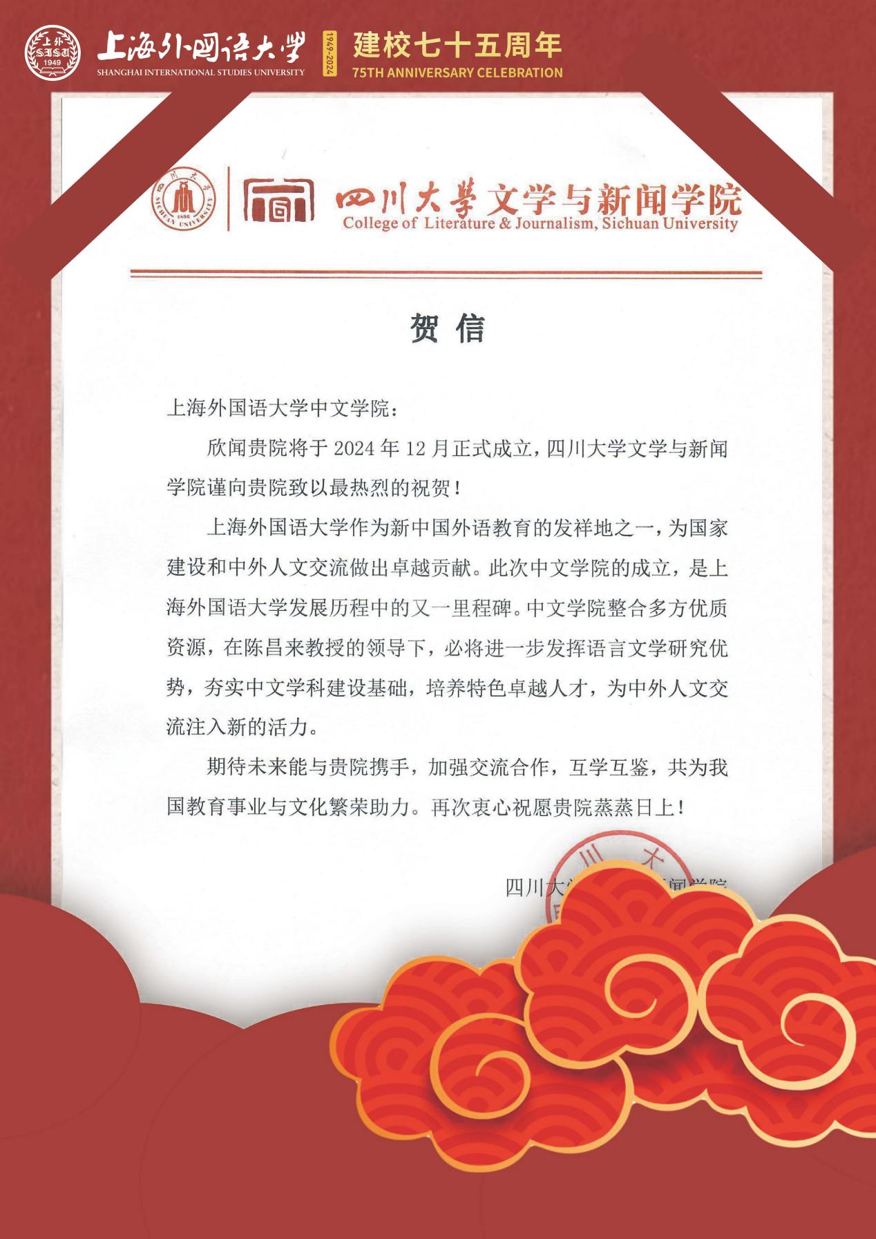 学院共收到32封来自全国各地兄弟院校的贺信