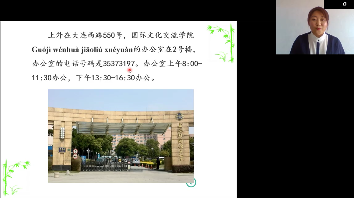4月30日,为期两个月的义务教学工作即将结束了,陪伴了我们整整59天的在线汉语课程终于要画上一个句号了,同学们心中充满了千万不舍,但早已将自己视作了SISUer。“相知无远近,万里尚为邻”,说不定未来的哪一天,来自五湖四海的你可以和上外的美女老师在真实的物理世界中邂逅,你们可以用汉语聊聊记忆中的那段紧张的疫情时刻,聊聊那些59天里日夜为伴的汉语学习时光。