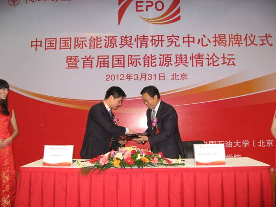 上海外国语大学张峰副校长在致辞中说:“上海外国语大学和中国石油大学签署战略合作协议是两校优势互补,共享发展的结果,有利于整合两校各自优势资源,推动中国国际舆情和能源舆情研究更上新的台阶”。