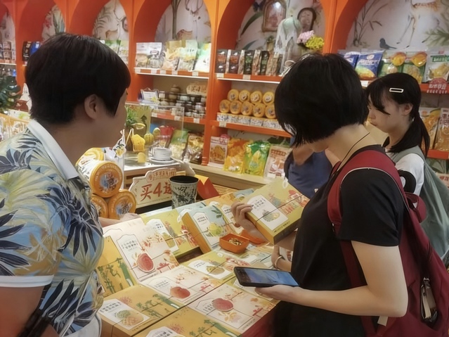 中新网海口8月19日电 (李欣楠 孙艺菡 粟棱)火山荔枝老爸茶酥、斑斓竹子酥、骑楼可可夹心曲奇炸虾饼、奇亚籽椰子脆片……在海口骑楼老街,一家名为“椰喜鹿老爸茶礼”的伴手礼店颇受游客青睐。这家店铺将海南传统的“老爸茶”文化转化为可带走的文创产品,成为老街新晋热门地标。