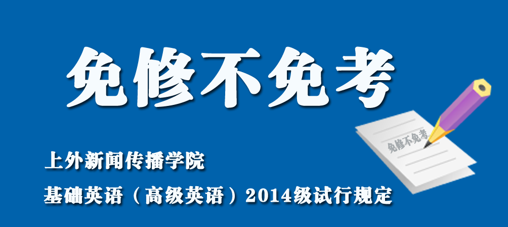 为了进一步提高学生的学习效率,培养学生的学习积极性,鼓励英语基础好、学习能力强的学生不再拘泥于英语课堂教学,从而更加灵活、合理地分配学习时间,在参照了学校的有关规定、经学院内部充分论证后,新传学院特推出在2014级试行大二、大三期间基础英语(高级英语)“免修不免考”的规定及办法。