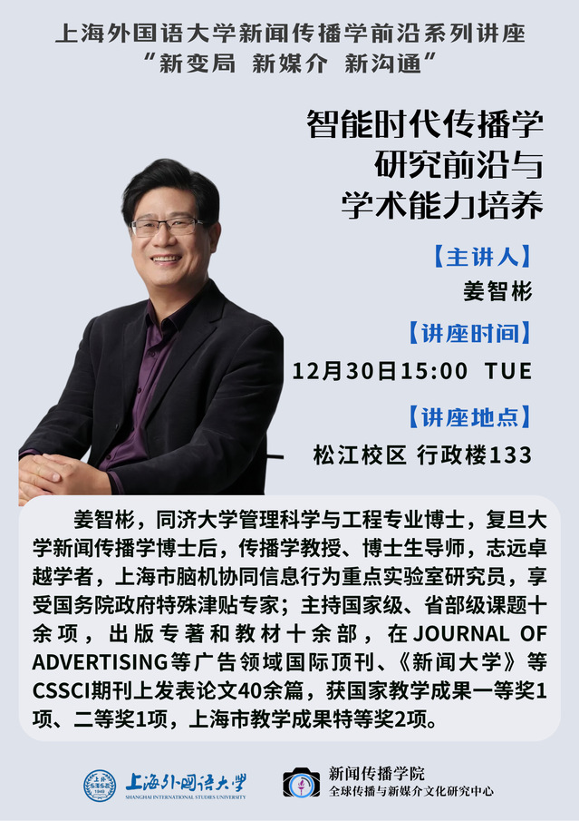 主题:《智能时代传播学研究前沿与学术能力培养》