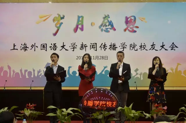 11月28日下午,上海外国语大学新闻传播学院(以下简称“新传学院”)校友大会在上外虹口校区第一报告厅成功举办。上海外国语大学副校长周承、校基金会秘书长黄震宇、外事处处长张红玲、宣传部部长衣永刚、新传学院院长郭可、党总支书记樊娟等领导及新闻传播学院校友代表、老教师代表、在职教师代表、学生代表两百多人参加了大会。各级校友、老师纷至而归,欢聚一堂。
