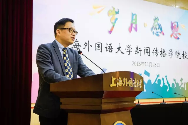 上海外国语大学副校长周承做重要讲话。他强调了新传校友大会的重要意义,总结了新传学院近年来着力推行改革的重要举措,肯定了学院在教学改革、人才培养模式改革、综合人事制度改革以及推进国际化建设等方面取得的阶段性成果。由此,周校长诚恳希望广大校友集思广益,共同致力于学院的发展大计。