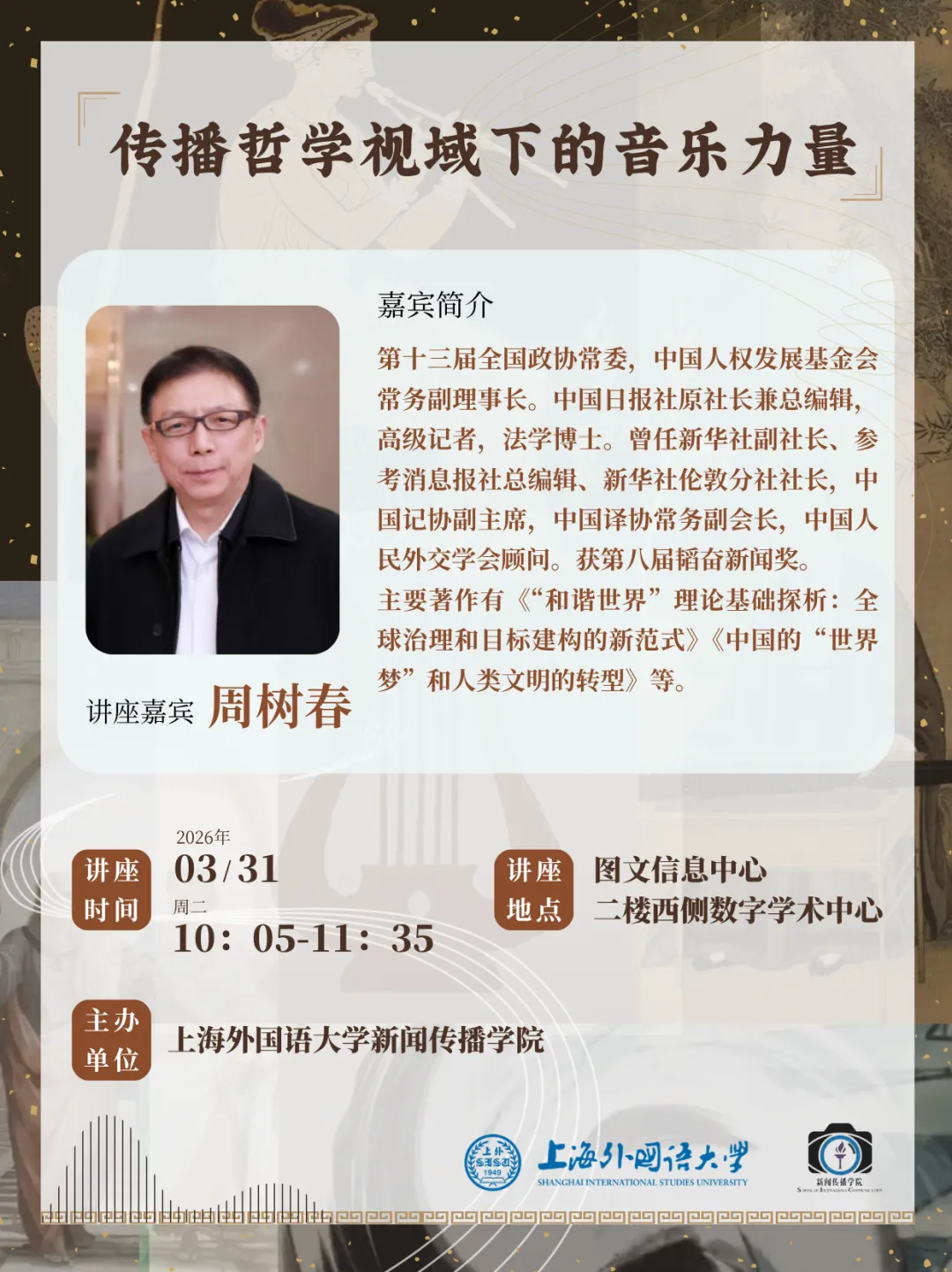 周树春,第十三届全国政协常委,中国人权发展基金会常务副理事长。中国日报社原社长兼总编辑,高级记者,法学博士。曾任新华社副社长、参考消息报社总编辑、新华社伦敦分社社长,中国记协副主席,中国译协常务副会长,中国人民外交学会顾问。获第八届韬奋新闻奖。主要著作有《“和谐世界”理论基础探析:全球治理和目标建构的新范式》《中国的“世界梦”和人类文明的转型》等。