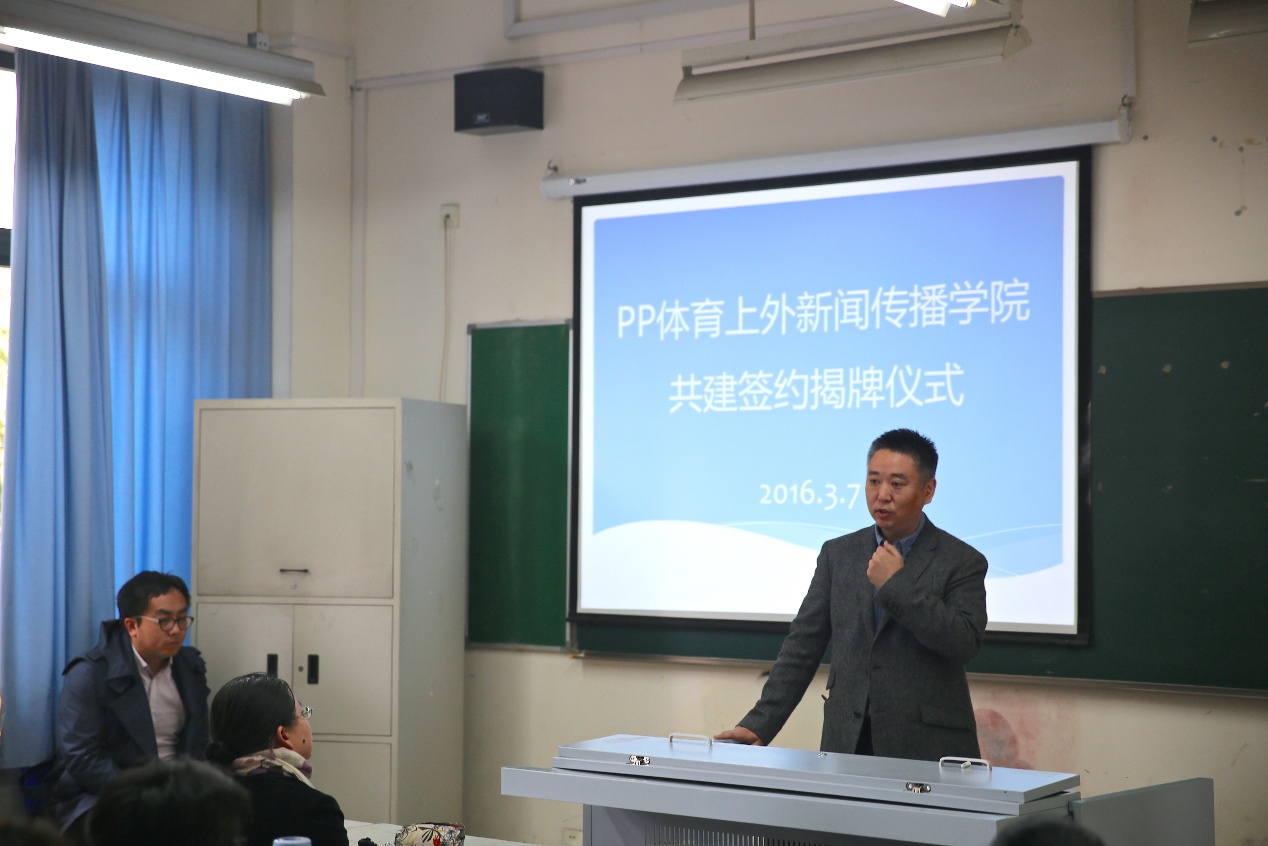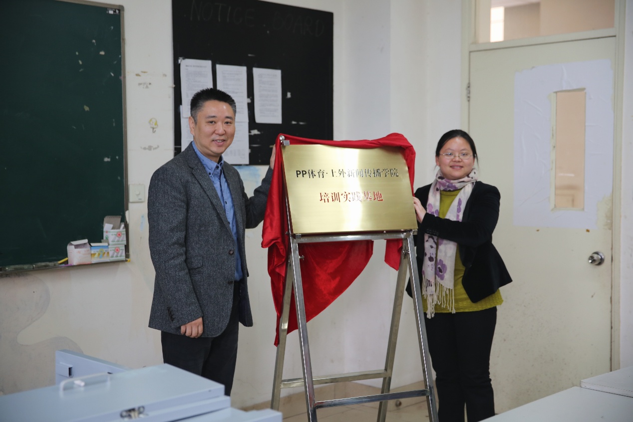JCSN上外讯 2016年3月7日早上10点,PP体育与上外新闻传播学院共建签约揭牌仪式于一教楼1152教室准时举行。PP体育CEO张讯、新传学院副院长严怡宁共同为共建项目揭牌,在PP体育工作的上外校友徐隽以及24位新传学院的同学参与了揭牌仪式,新传学院的顾天柱老师主持了这场仪式。