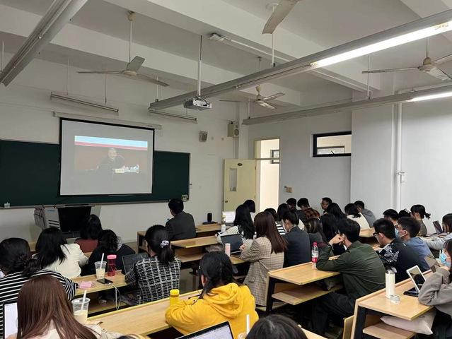 10月19日下午, 2021年度“新时代的中国”国情教育系列讲座第一讲在复旦大学新闻学院蔡冠深报告厅举行,上外新闻传播学院组织师生前往第一教学楼245教室观看线上讲座。本次讲座由复旦大学新闻学院院长、人民日报原副总编辑米博华主讲,以“搅动全球风云的激烈较量——意识形态视域下的大国角力”为主题,为部校共建的五所高校的师生上了精彩深刻的一课。