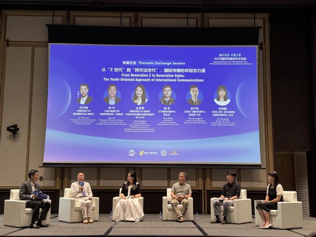 来自学界、业界、媒体界等领域的代表在会议上围绕海南自贸港封关运作、人工智能、以及年轻一代在国际传播中的角色等议题,共同探讨了国际传播效能提升的创新路径与实践。郭可教授作为嘉宾在下午的专题交流会上就国际传播的年轻态力量,尤其是Z世代、阿尔法世代的国际传播进行了交流发言。